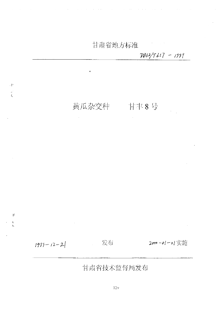 DB62/T 617-1999 黄瓜杂交种甘丰8号