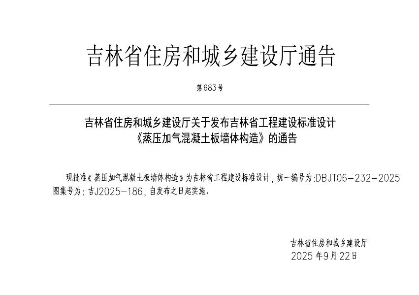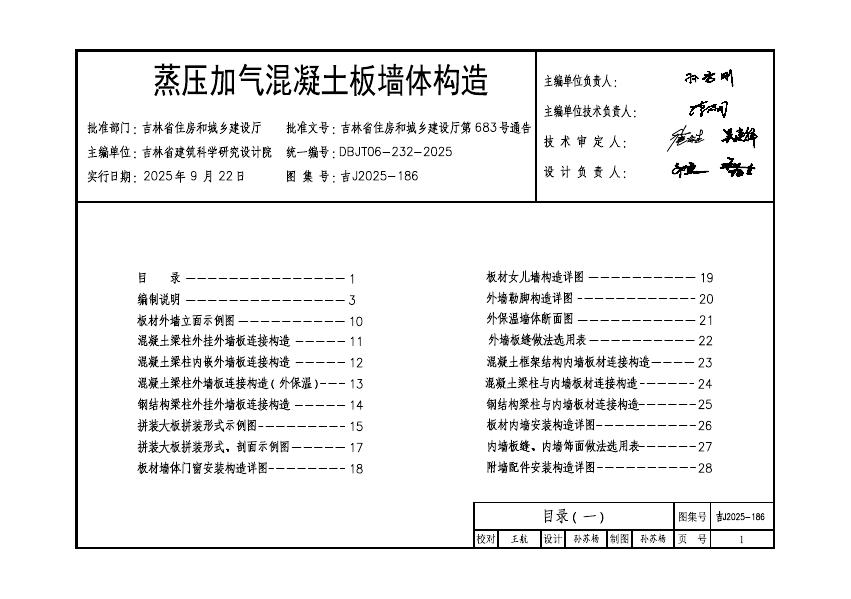 吉J2025-186 蒸压加气混凝土板墙体构造图集
