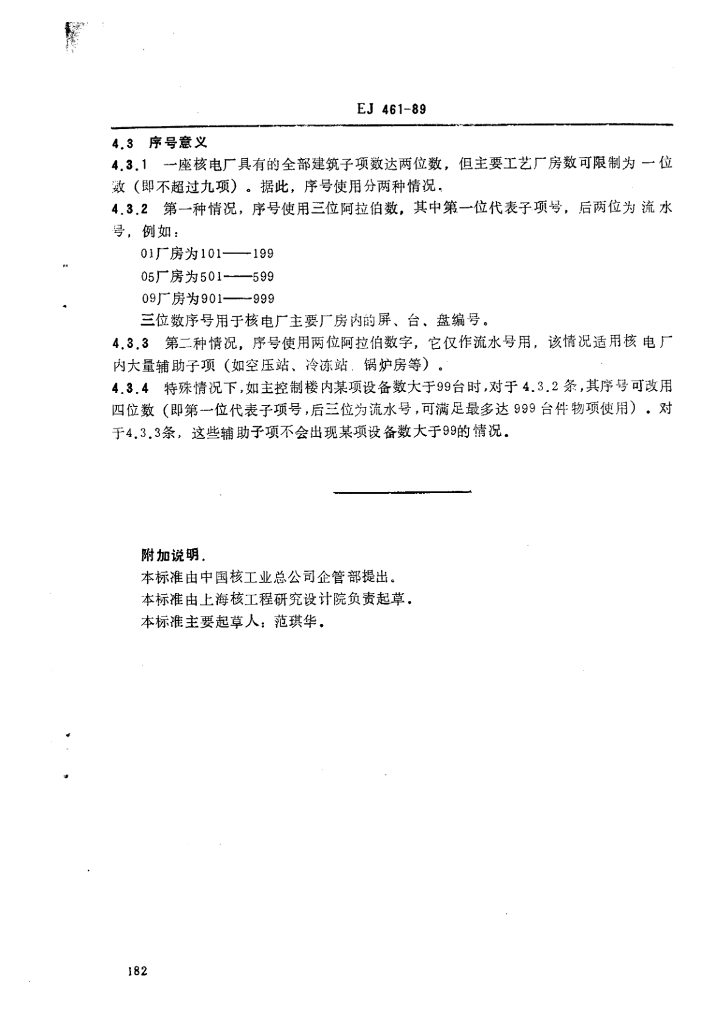 EJ/T 461-1989 三十万千瓦压水堆核电厂 电缆、屏、台、盘编号规定