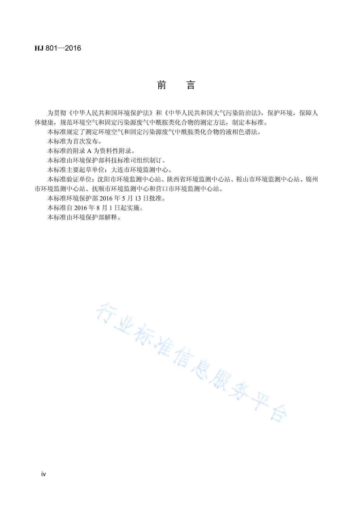 HJ 801-2016 环境空气和废气 酰胺类化合物的测定 液相色谱法