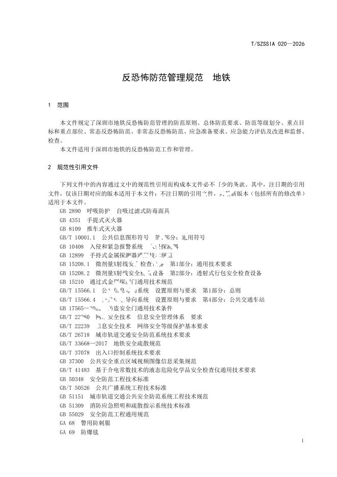 T/SZSSIA 020-2026 反恐怖防范管理规范 地铁