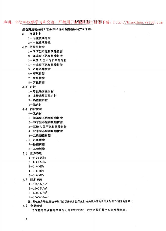JC/T 838-1998 玻璃纤维缠绕增强热固性树酯夹砂压力管