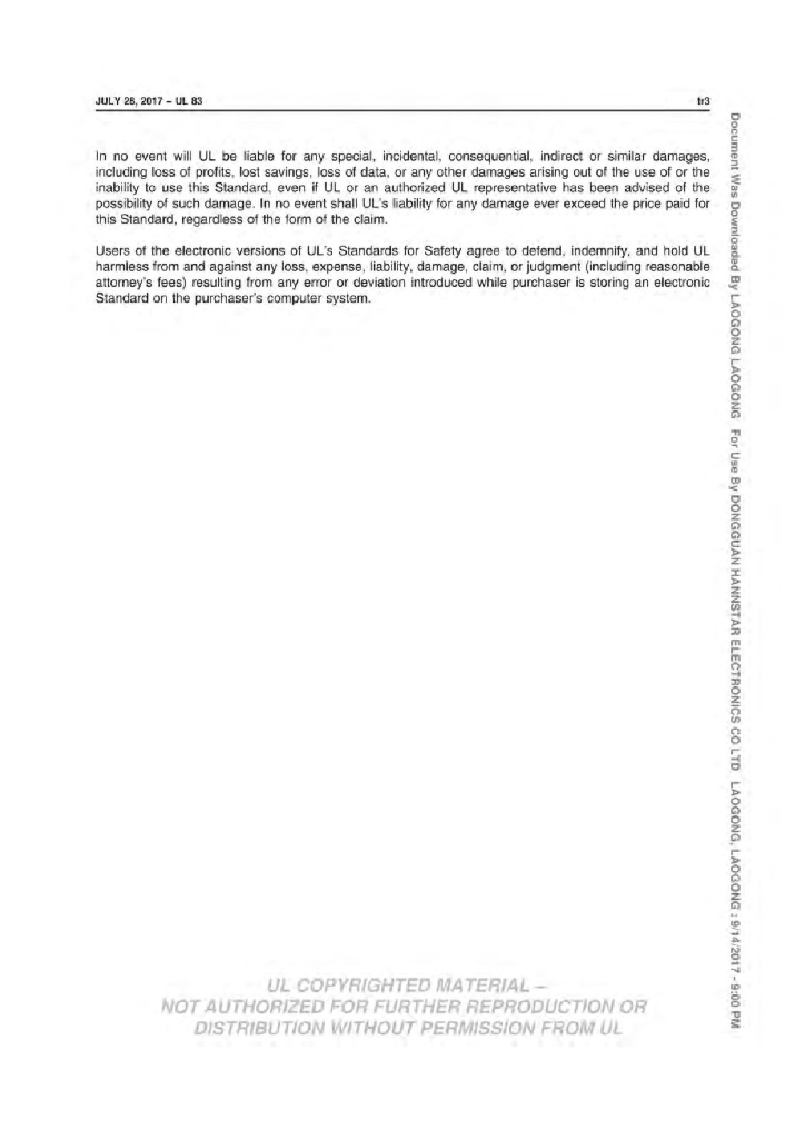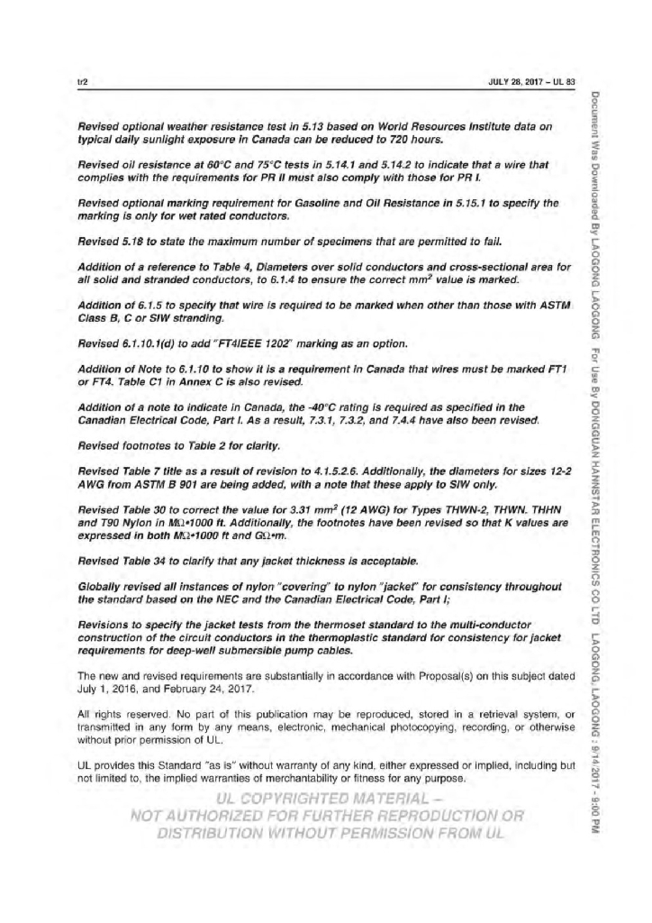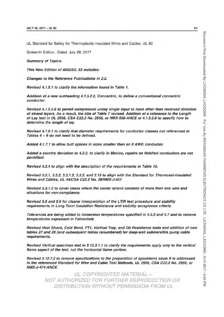 UL 83-2017 热塑性塑料绝缘电线电缆
