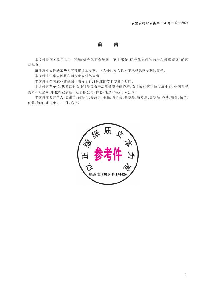 农业农村部公告 第864号-12-2024 转基因植物及其产品成分检测 耐除草剂玉米GA21转化体特异性PCR方法