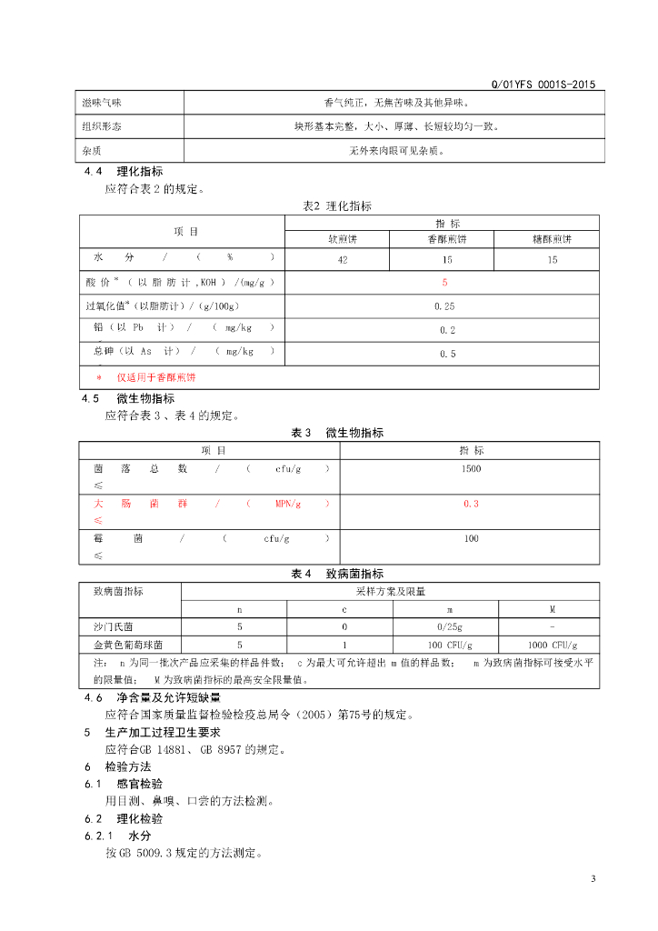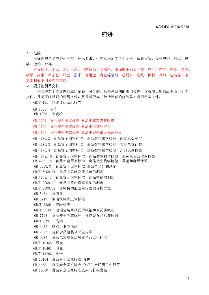Q/01YFS 0001S-2015 济南野风酥食品有限公司 煎饼