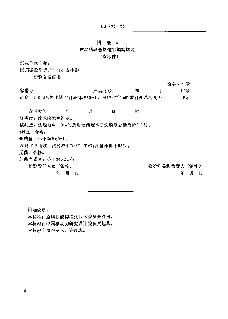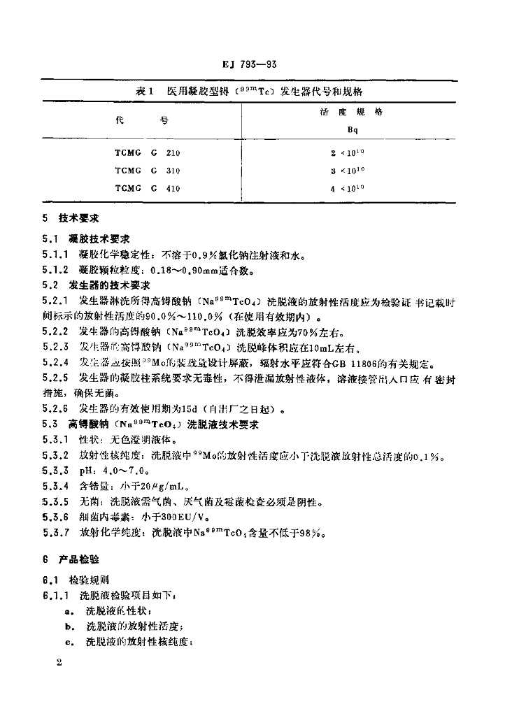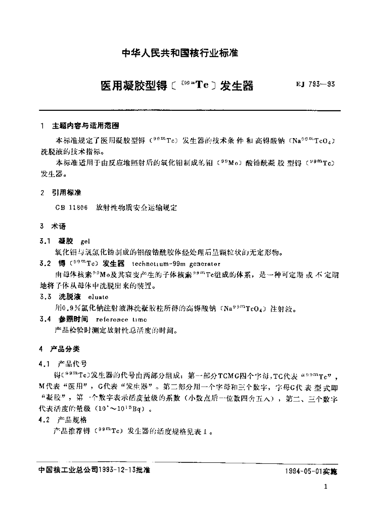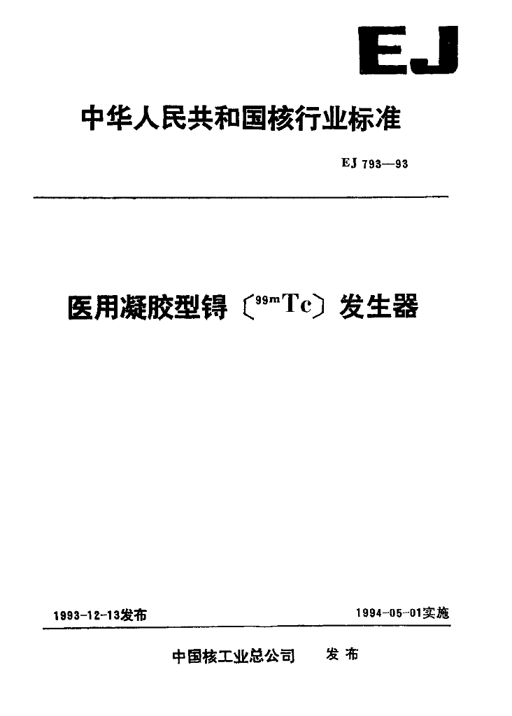 EJ 793-1993 医用凝胶型锝 99mTC发生器
