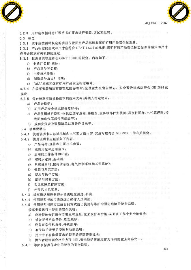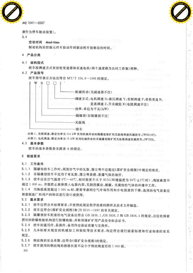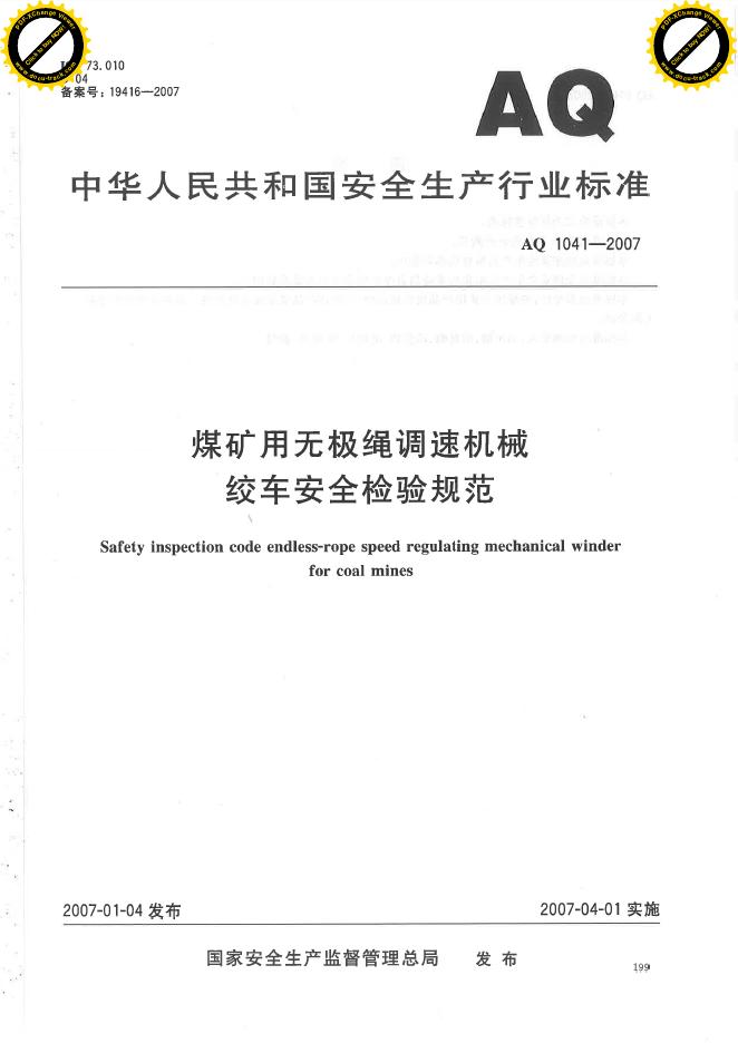 AQ 1041-2007 煤矿用无极绳调速机械绞车安全检验规范
