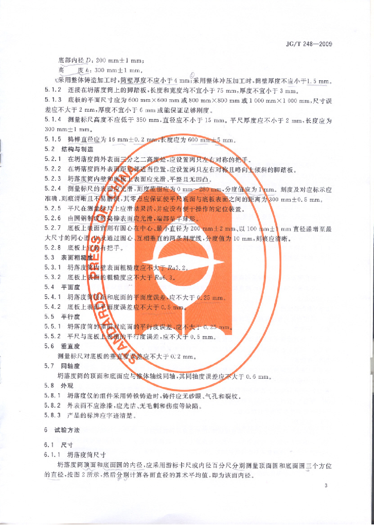 JG/T 248-2009 混凝土坍落度仪