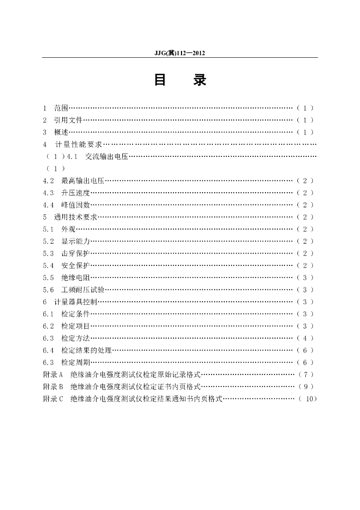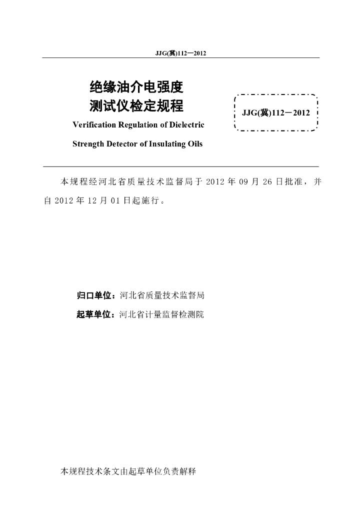 JJG(冀)112-2012 绝缘油介电强度测试仪检定规程