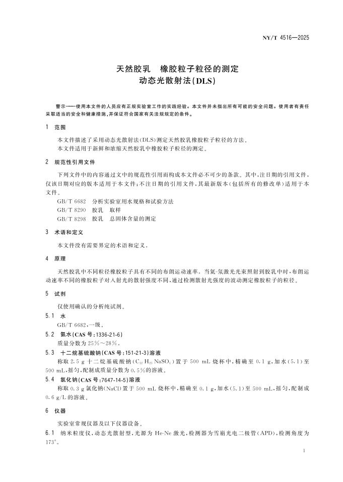 NY/T 4516-2025 天然胶乳 橡胶粒子粒径的测定 动态光散射法(DLS)