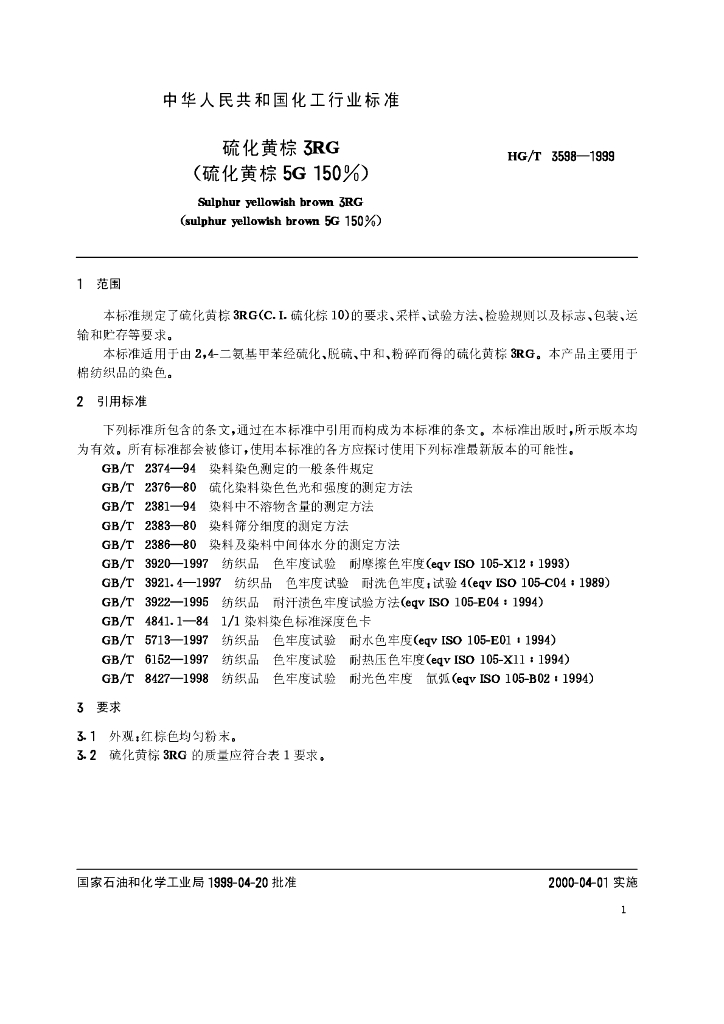 HG/T 3598-1999 硫化黄棕3RG(硫化黄棕5G150)