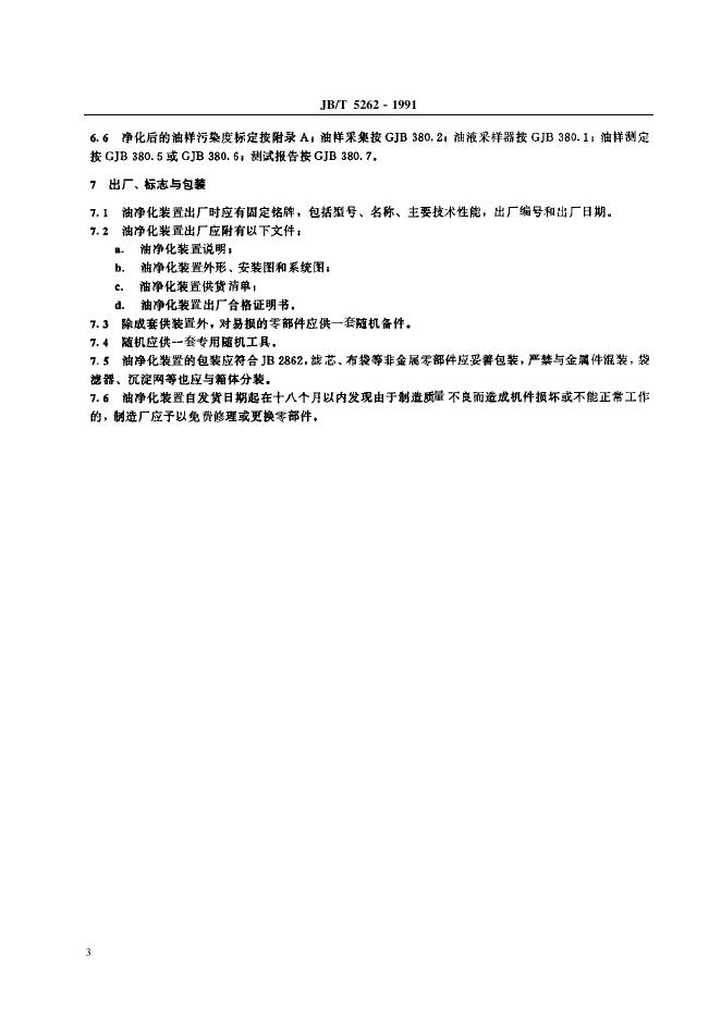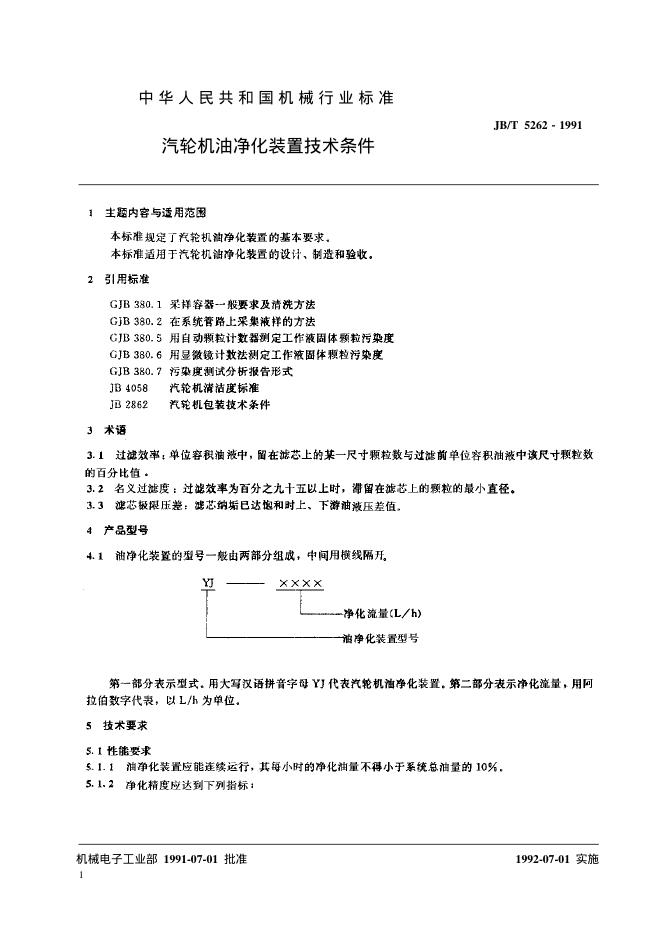 JB/T 5262-1991 汽轮机油净化装置 技术条件