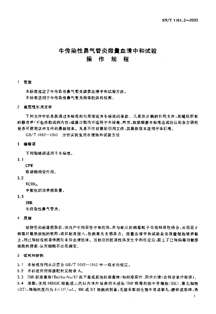 SN/T 1164.2-2003 牛传染性鼻气管炎微量血清中和试验操作规程