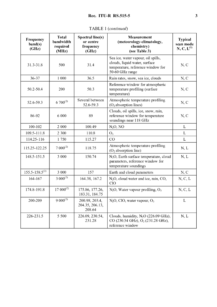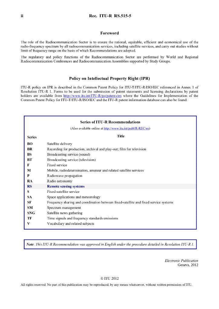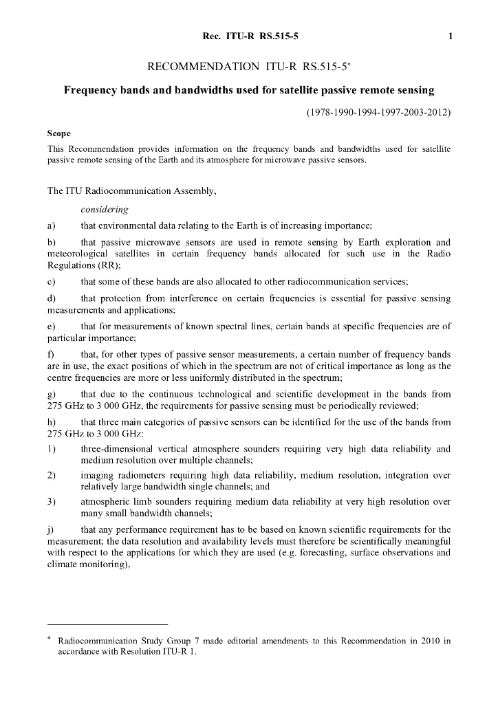 ITU-R RS.515-5-2012 用于被动式遥感卫星的频段和频宽
