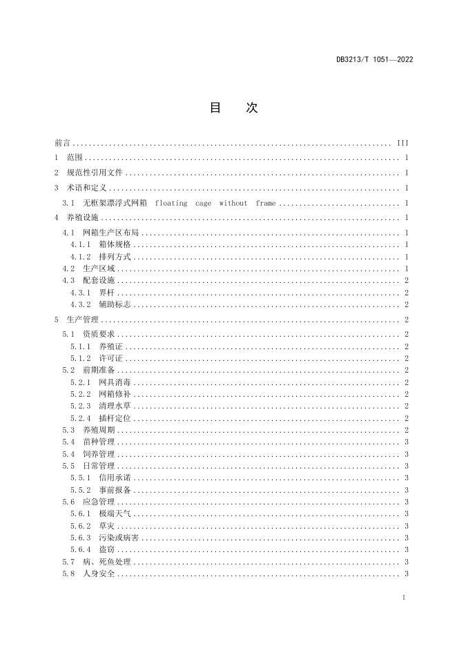 DB3213/T 1051-2022 无框架漂浮式网箱养殖鳙鱼管理规范