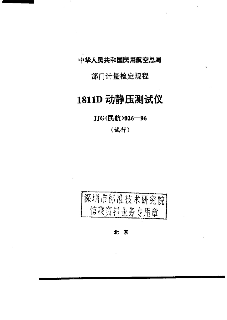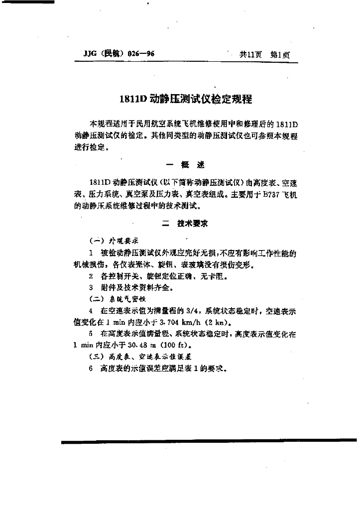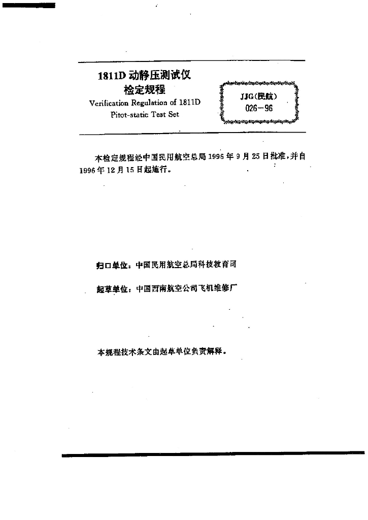 JJG(民航)026-1996 1811D动静压测试仪检定规程