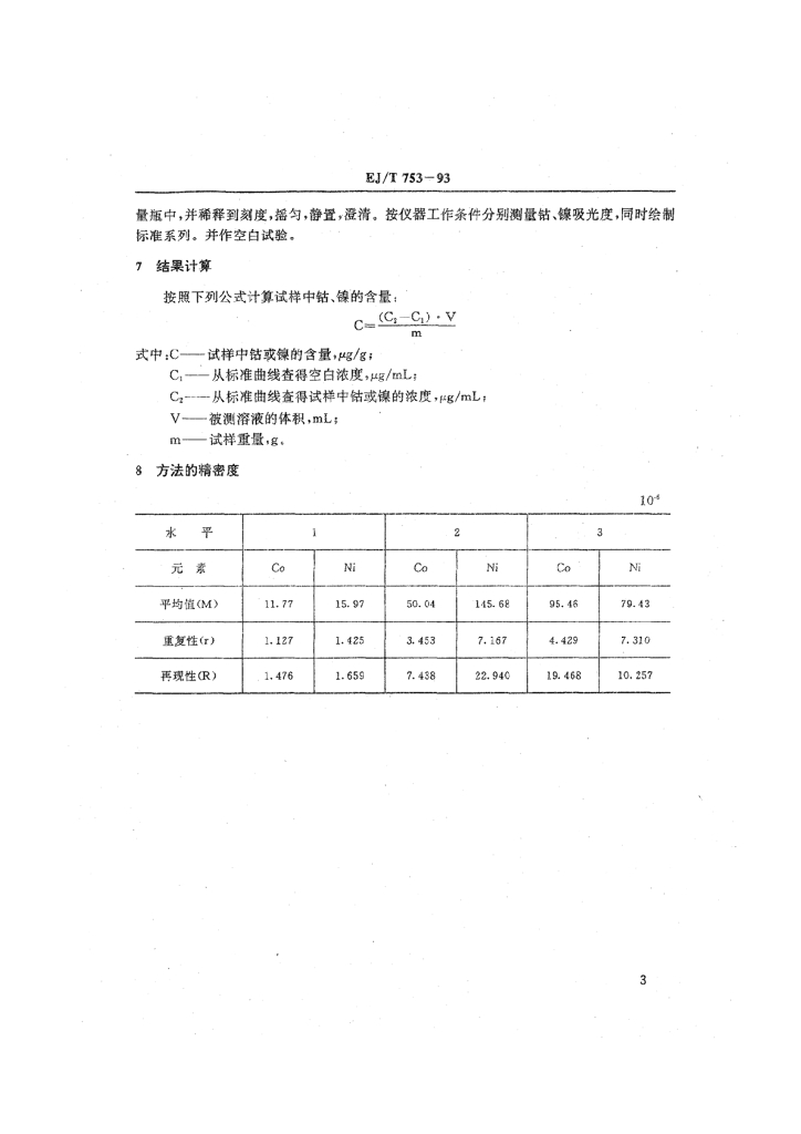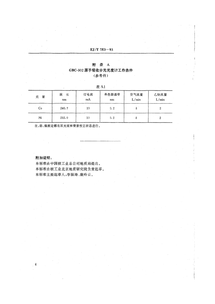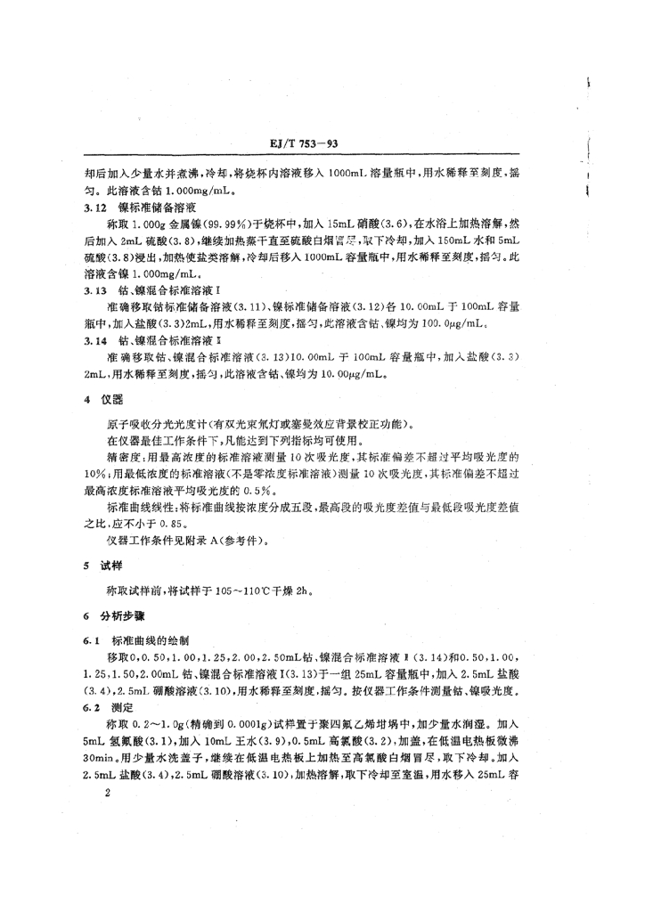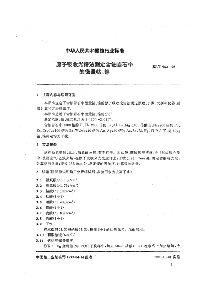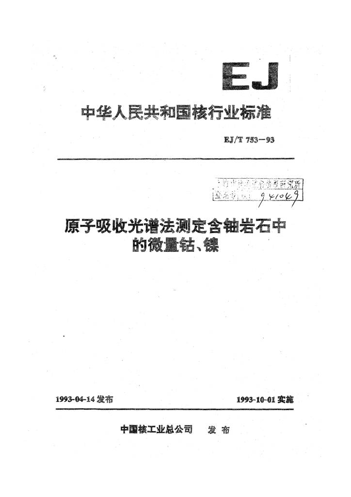 EJ/T 753-1993 原子吸收光谱法测定含铀岩石中的微量钴、镍