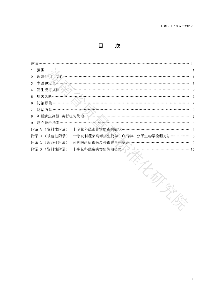 DB43/T 1367-2017 十字花科蔬菜病毒病综合防治技术规程