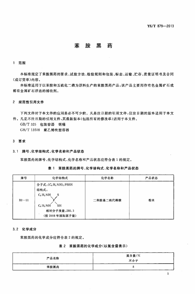 YS/T 879-2013 苯胺黑药