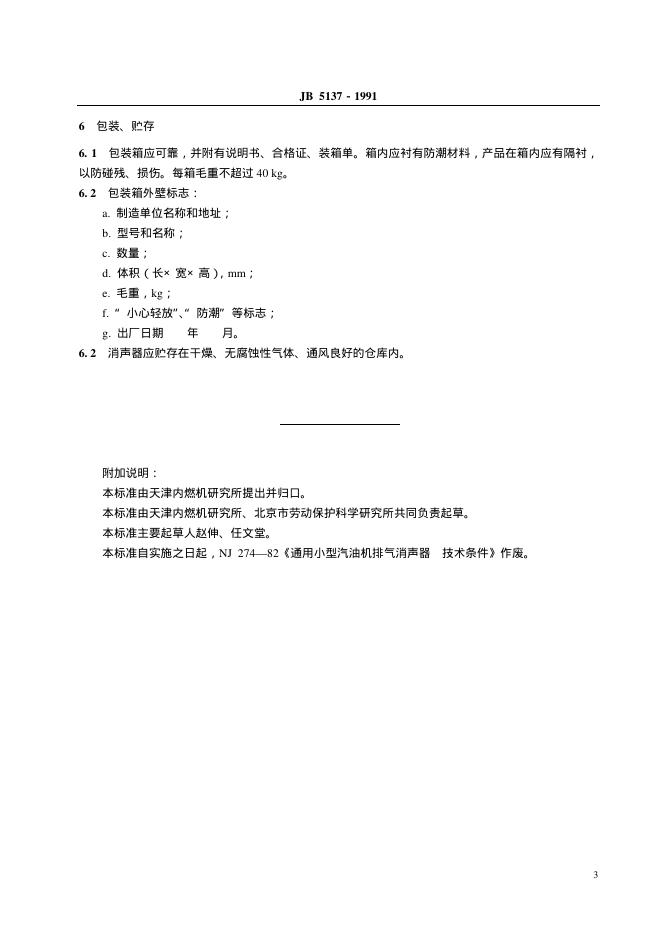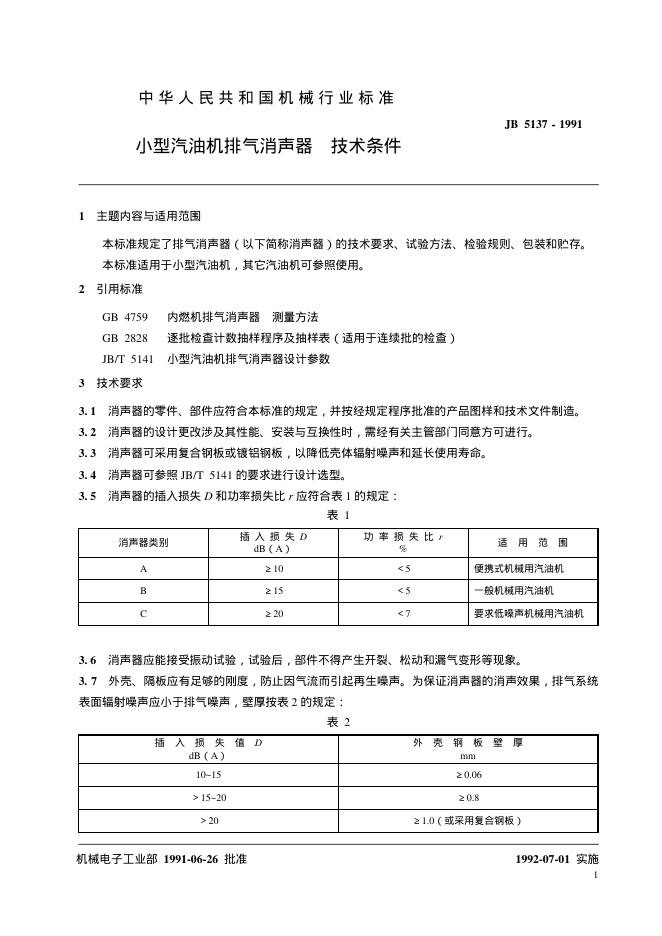 JB/T 5137-1991 小型汽油机排气消声器 技术条件