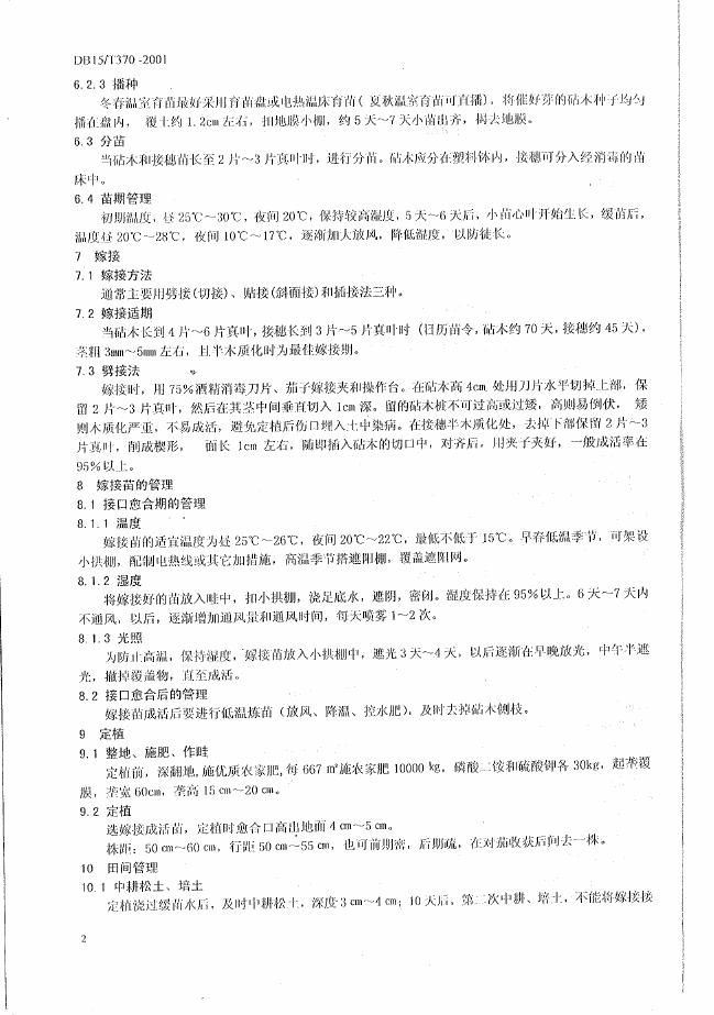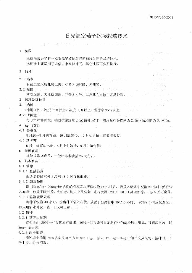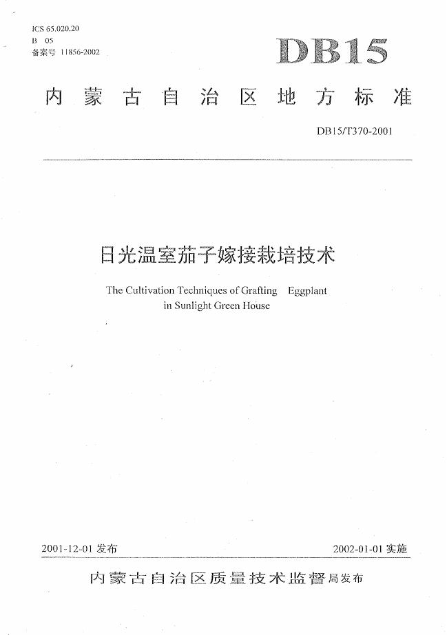 DB15/T 370-2001 日光温室茄子嫁接栽培技术