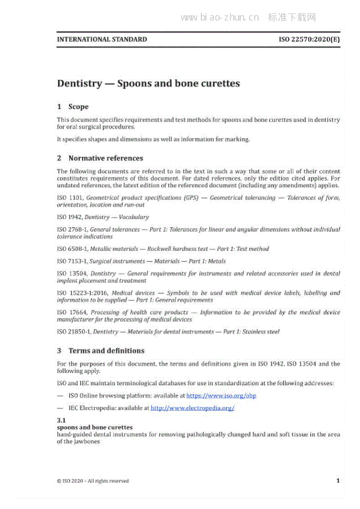 ISO 22570:2020 牙科学 —勺子和骨刮匙(英文版)