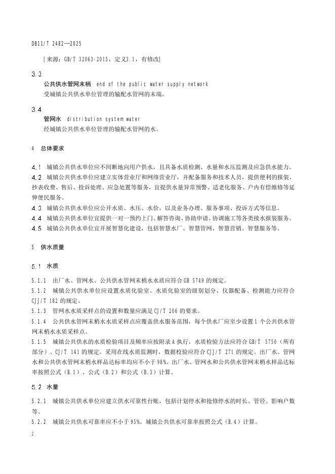 DB11/T 2482-2025 城镇公共供水服务规范