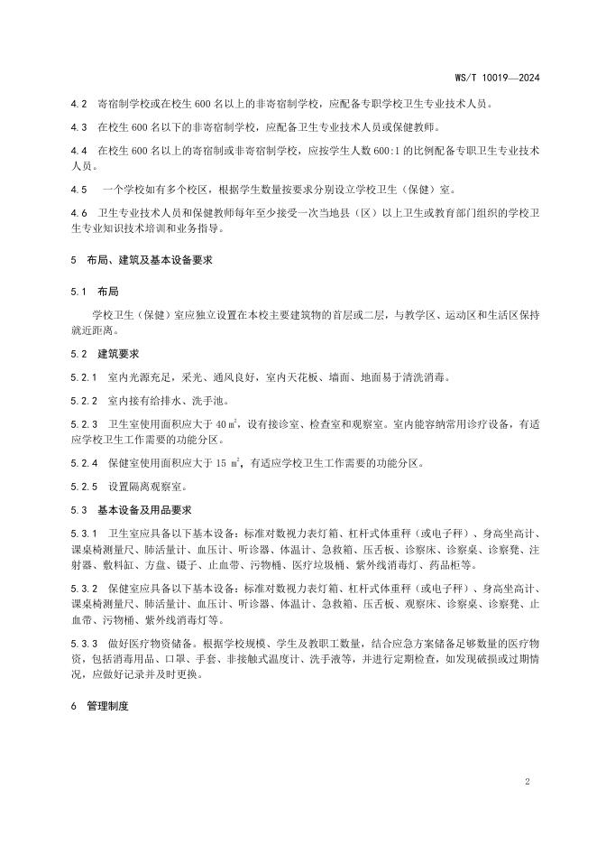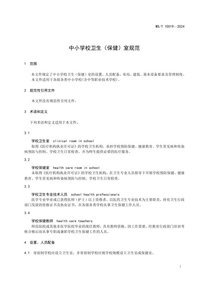 WS/T 10019-2024 中小学校卫生(保健)室规范.