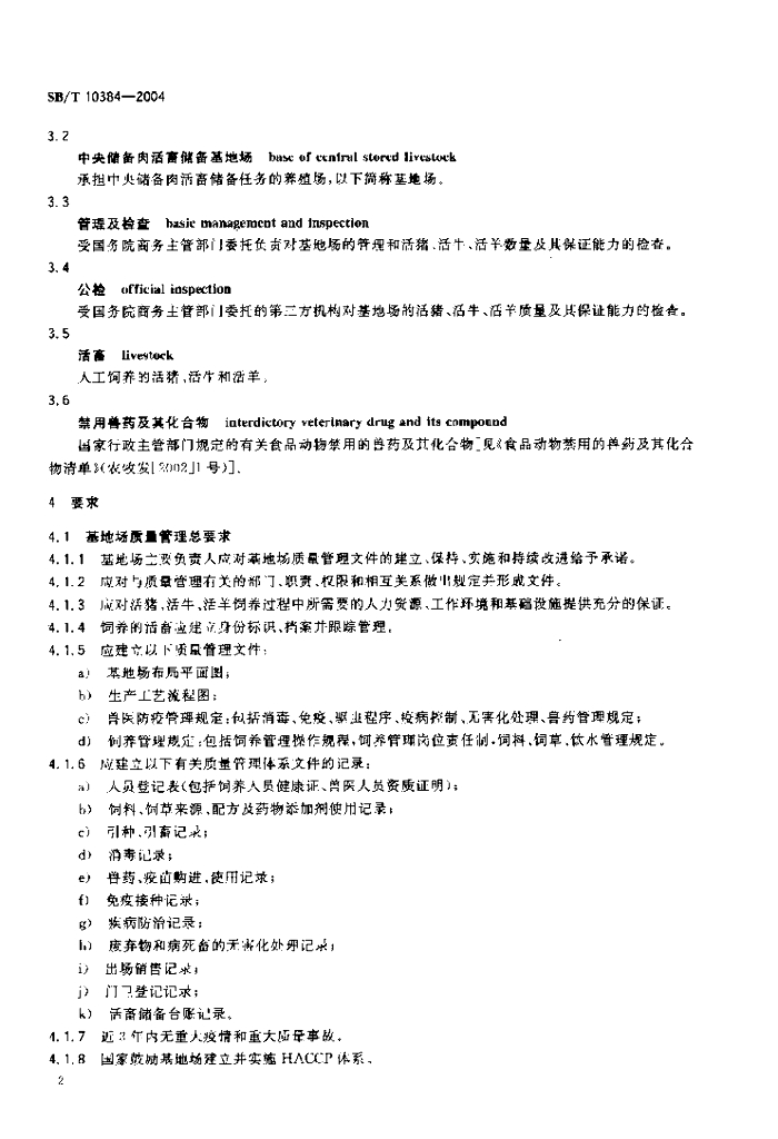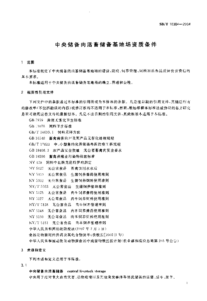 SB/T 10384-2004 中央储备肉活畜储备基地场资质条件