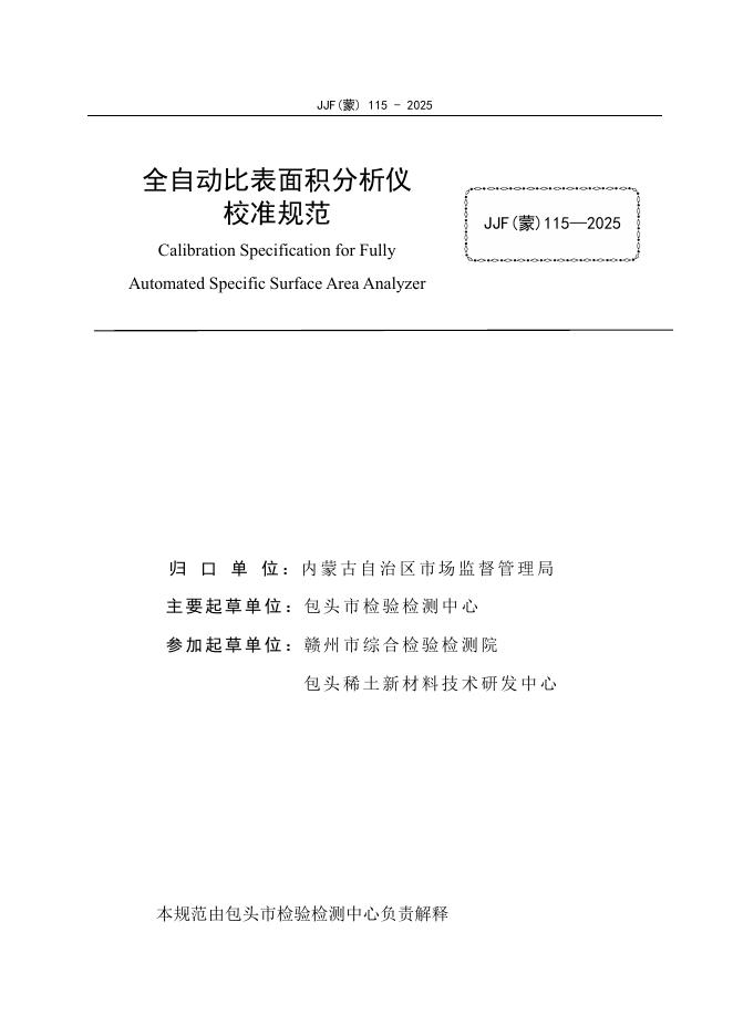 JJF(蒙)115-2025 全自动比表面积分析仪校准规范