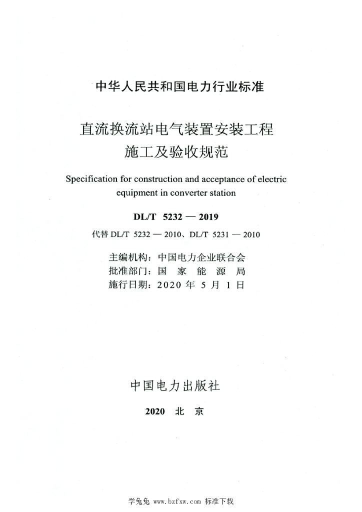 DL/T 5232-2019 直流换流站电气装置安装工程施工及验收规范
