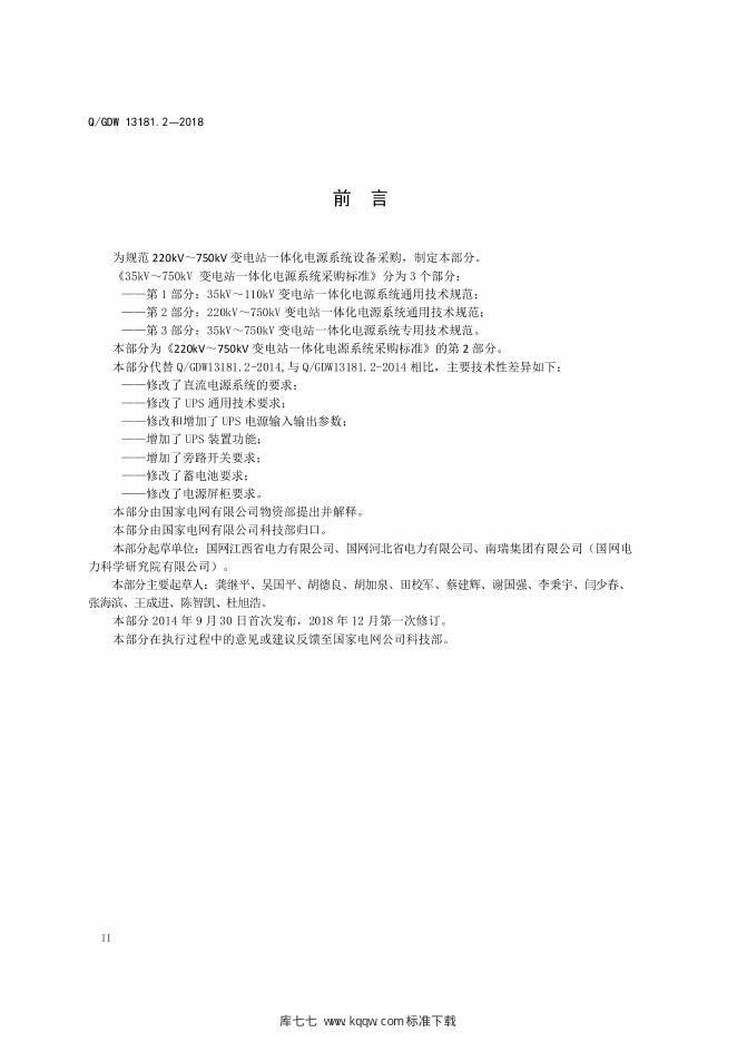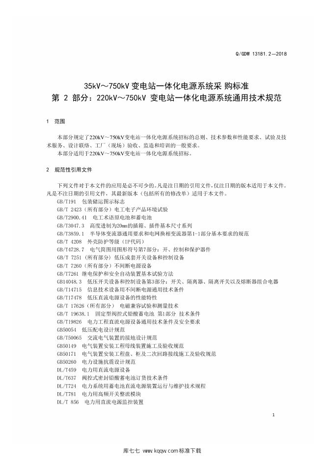 Q/GDW 13181.2-2018 220kV~750kV 变电站一体化电源系统采购标准 第2部分:通用技术规范