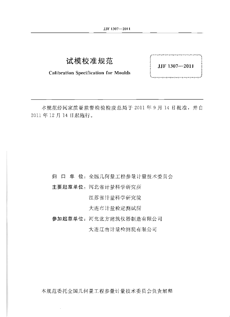河北省计量科学研究院、江苏省计量科学研究院、大连市计量检定测试所、河北北方建筑仪器制造有限公司、大连辽南计量检测院有限公司