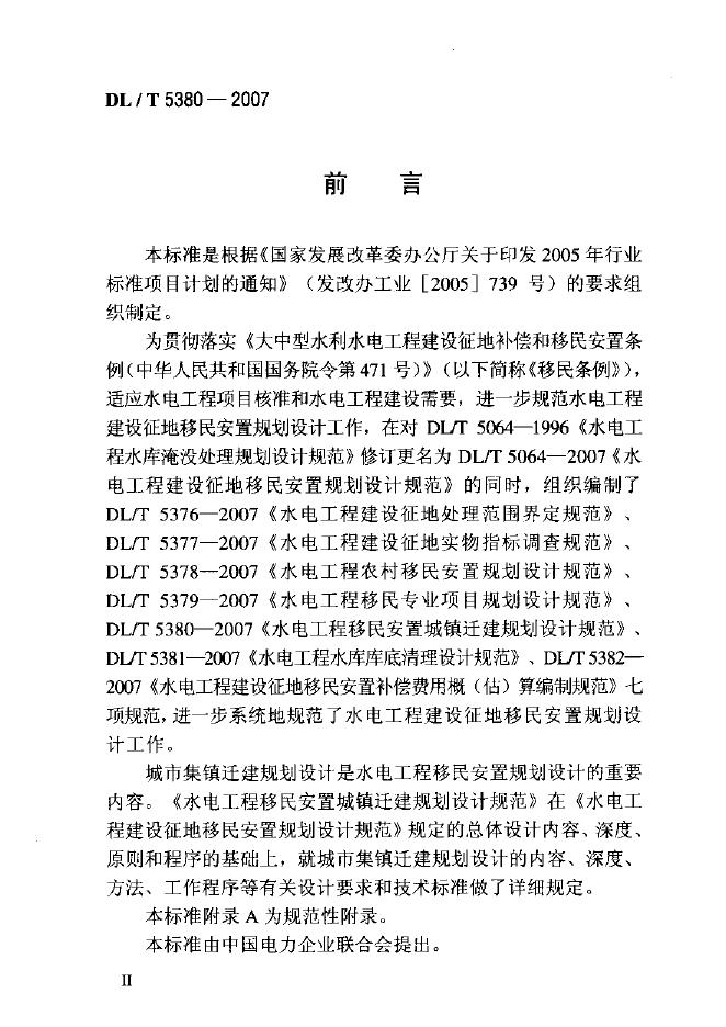 DL/T 5380-2007 水电工程移民安置城镇迁建规划设计规范