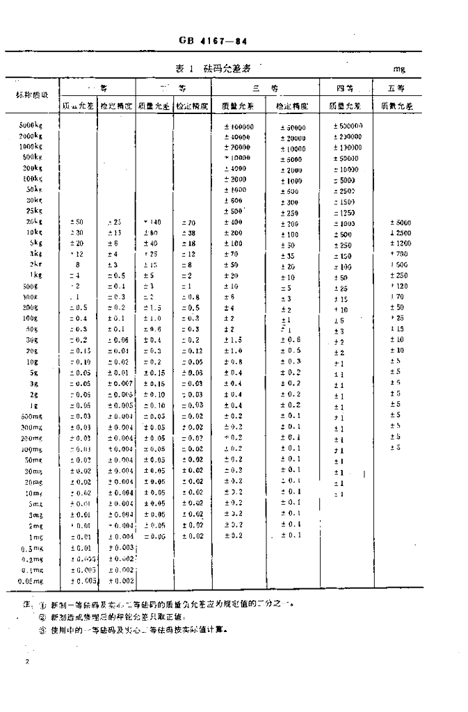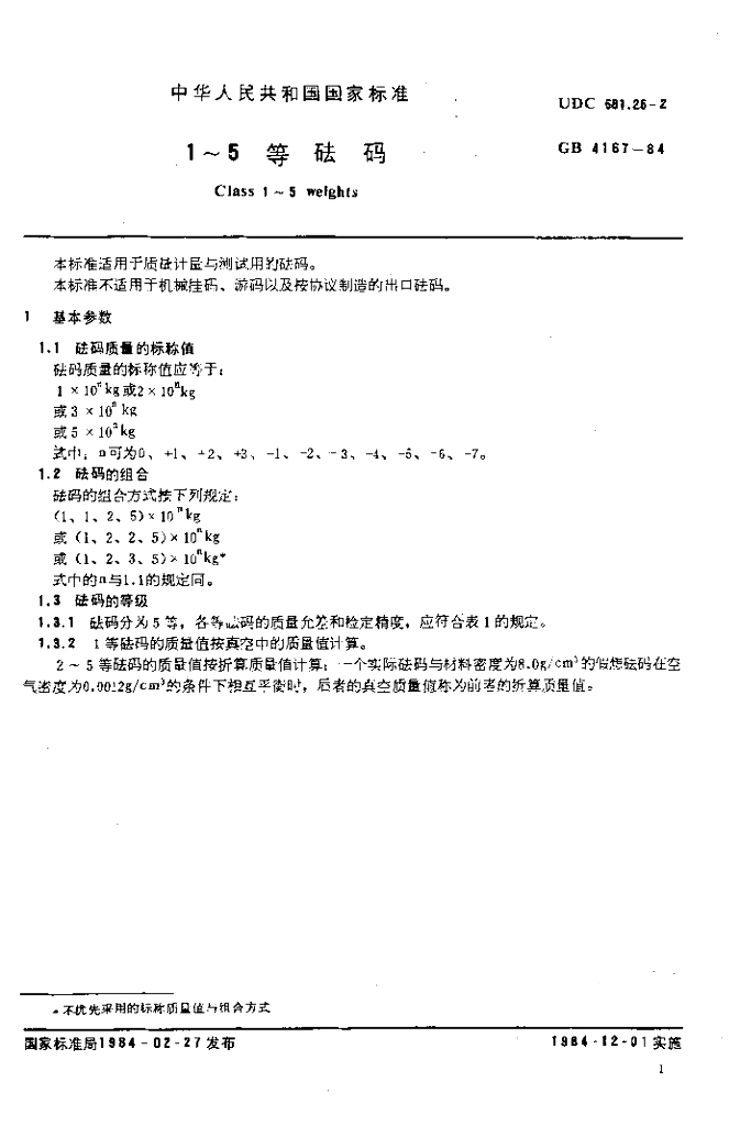 GB/T 4167-1984 1~5等砝码