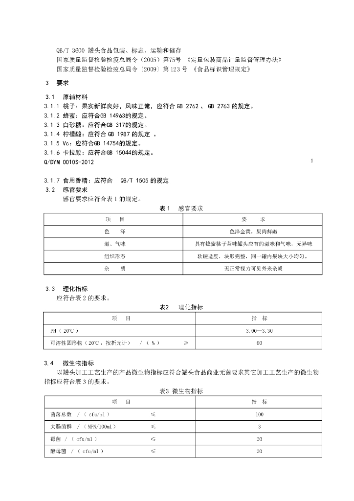 Q/DYM 0010S-2012 蜂蜜桃子茶味罐头