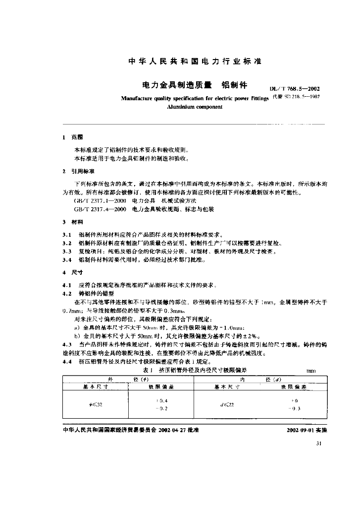 DL/T 768.5-2002 电力金具制造质量 铝制件