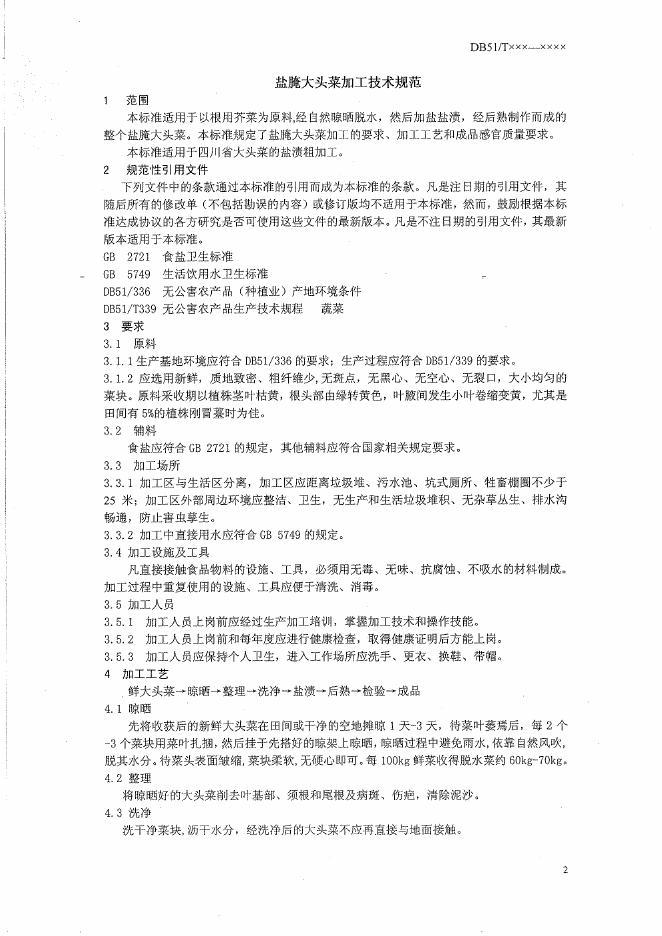 DB51/T 881-2009 盐腌大头菜加工技术规范