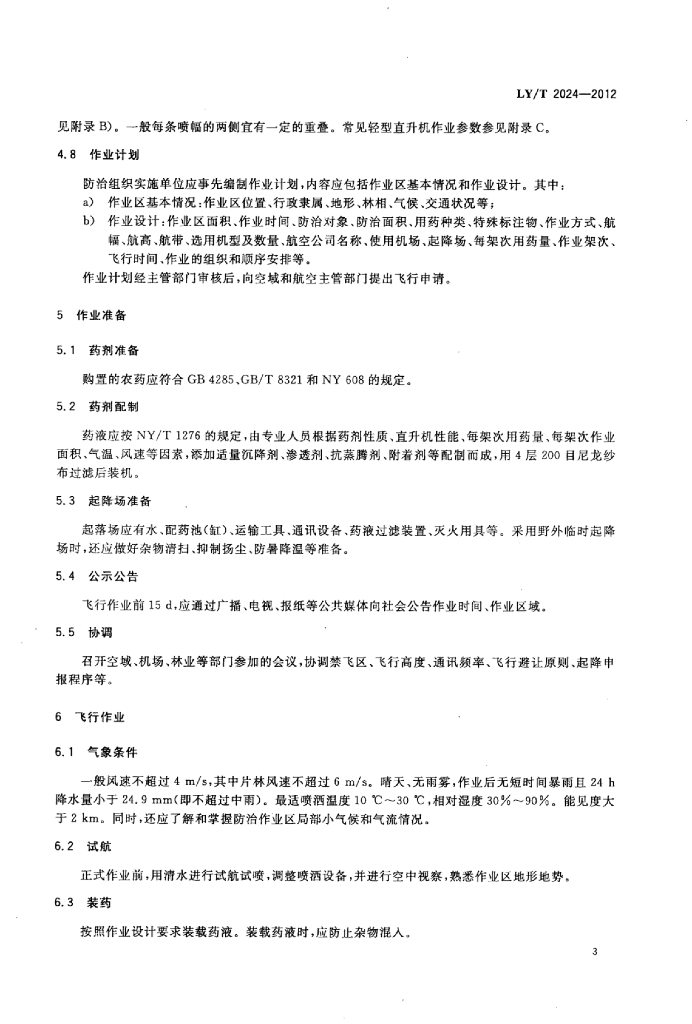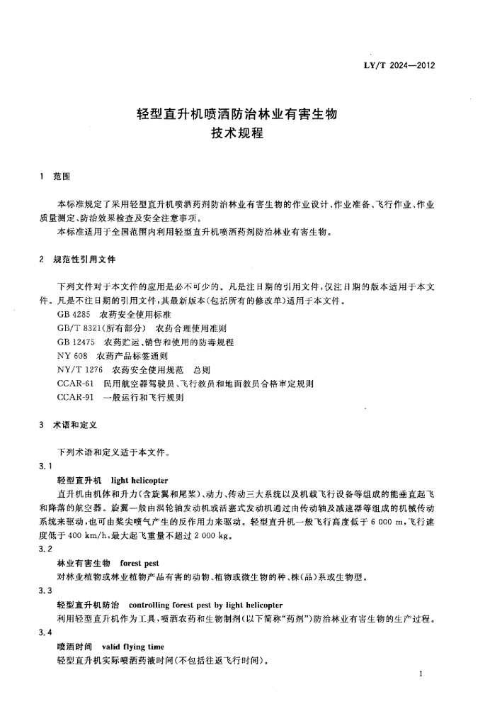 LY/T 2024-2012 轻型直升机喷洒防治林业有害生物技术规程
