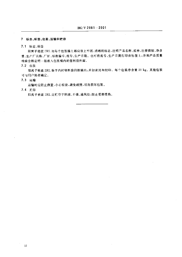 HG/T 2081-2001 阳离子艳蓝2RL 500%