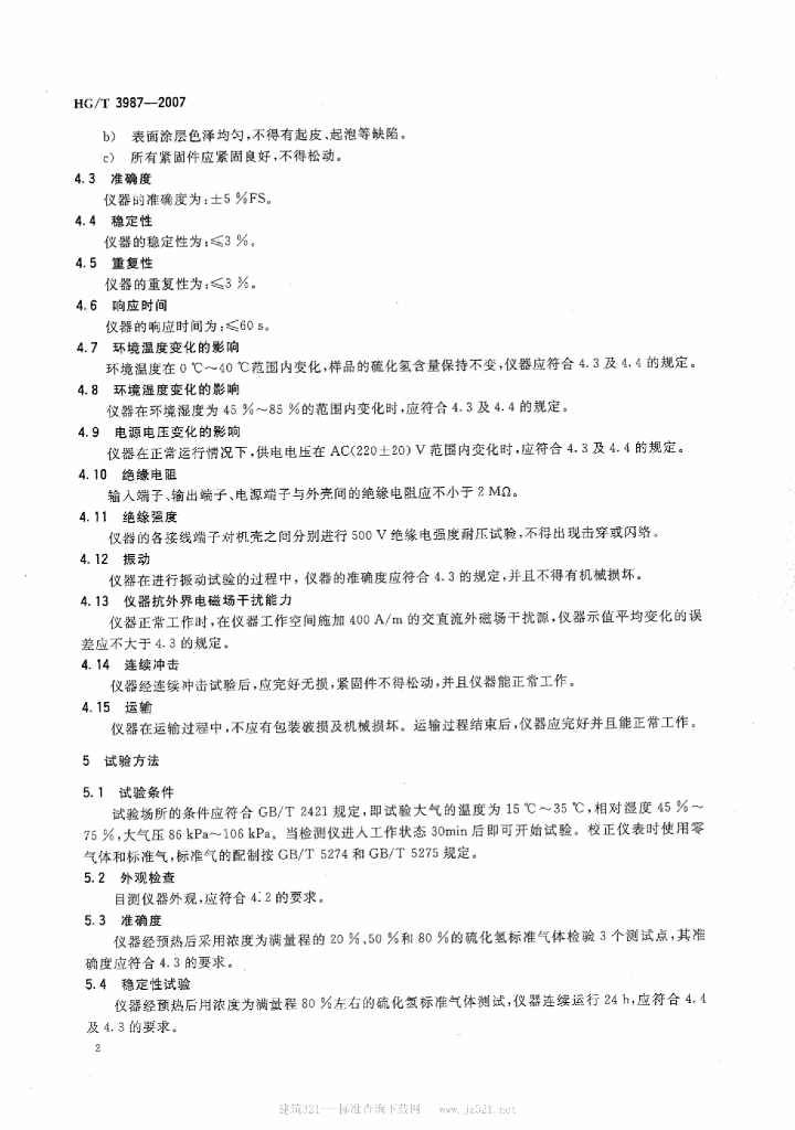 HG/T 3987-2007 电化学式硫化氢气体检测仪