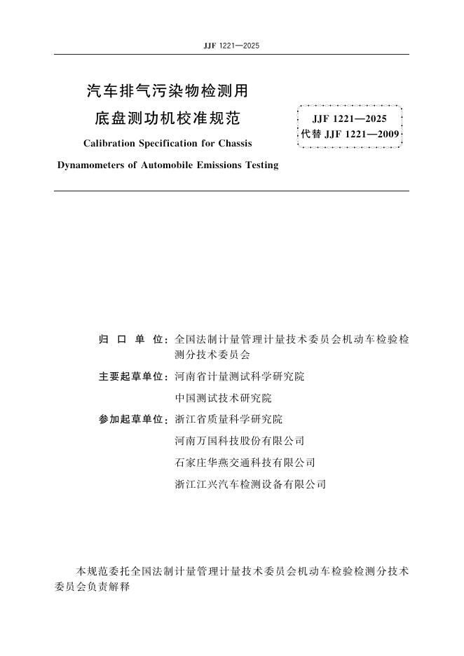 河南省计量测试科学研究院;中国测试技术研究院;浙江省质量科学研究院;河南万国科技股份有限公司;石家庄华燕交通科技有限公司;浙江江兴汽车检测设备有限公司