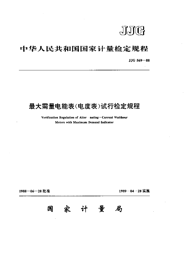 JJG 569-1988 最大需量电能表(电度表)(试行)检定规程