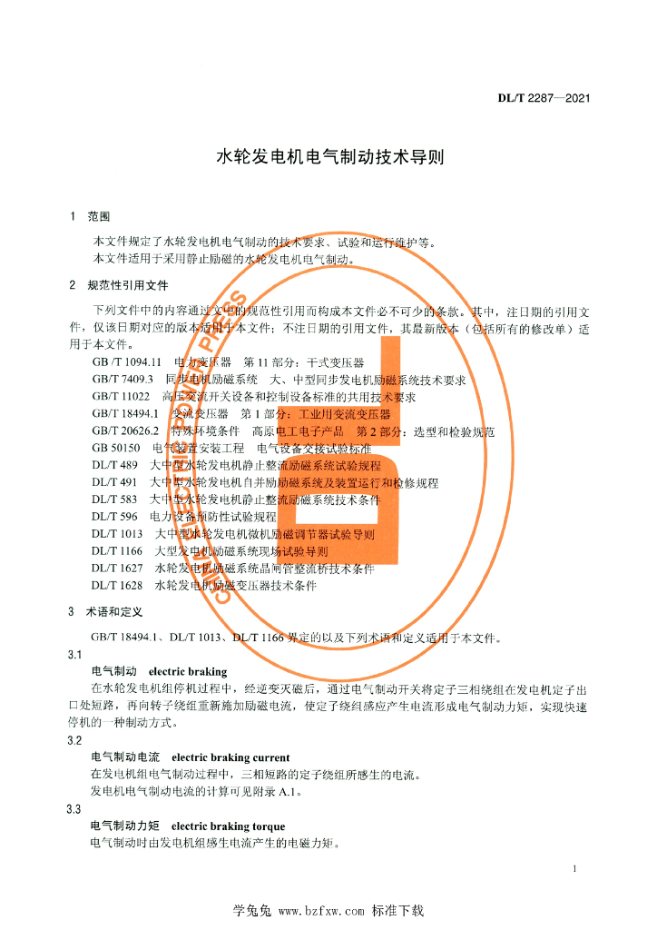 DL/T 2287-2021 水轮发电机电气制动技术导则