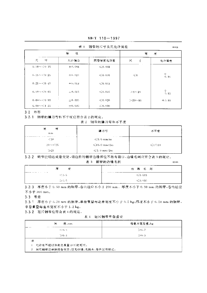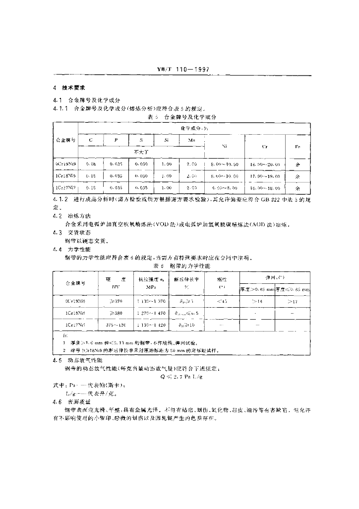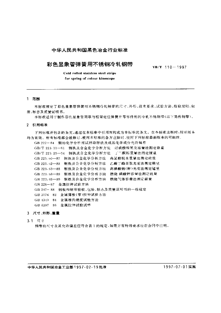 YB/T 110-1997 彩色显象管弹簧用不锈钢冷轧钢带
