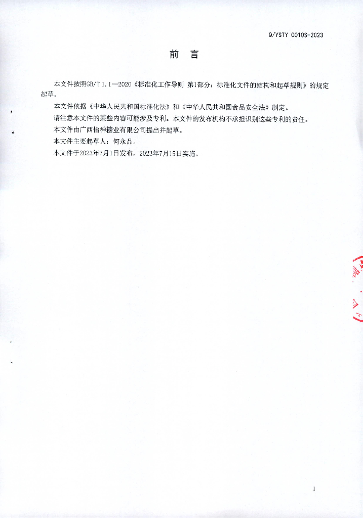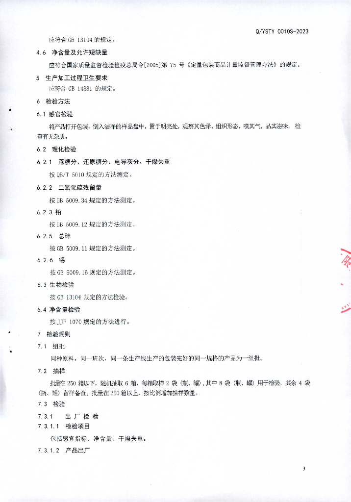 Q/YSTY 0010S-2023 冰糖类食糖(分装)