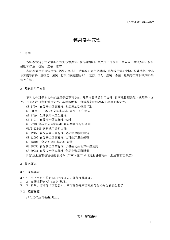 Q/HXDJ 0017S-2022 钙果洛神花饮