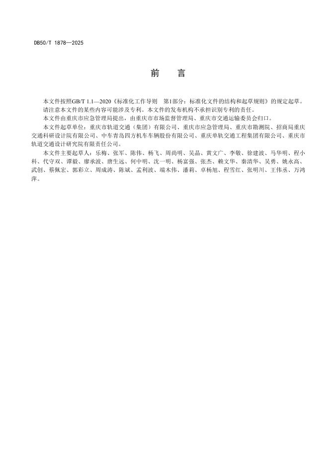 重庆市轨道交通(集团)有限公司、重庆市应急管理局、重庆市勘测院、招商局重庆交通科研设计院有限公司、中车青岛四方机车车辆股份有限公司、重庆单轨交通工程集团有限公司、重庆市轨道交通设计研究院有限责任公司。