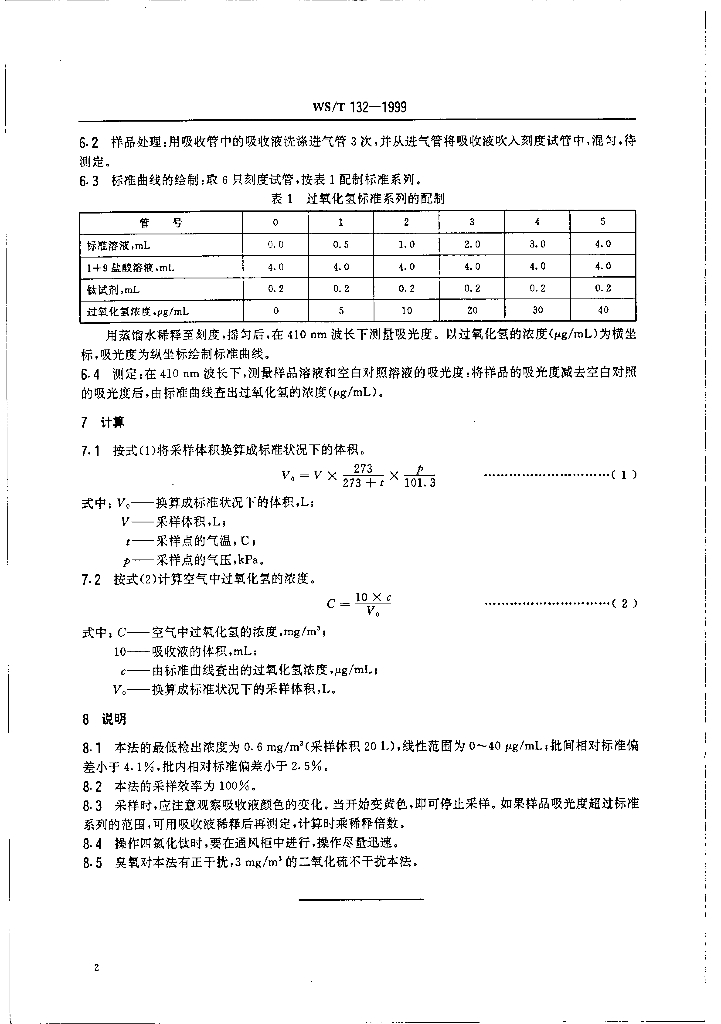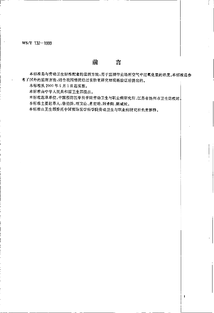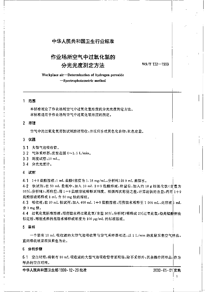 WS/T 132-1999 作业场所空气中过氧化氢的分光光度测定方法
