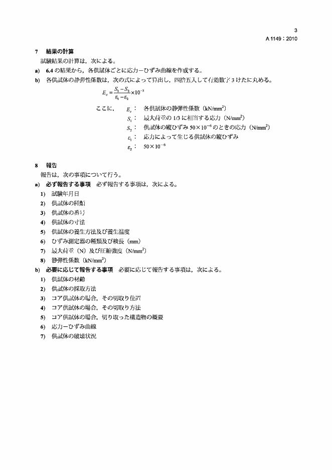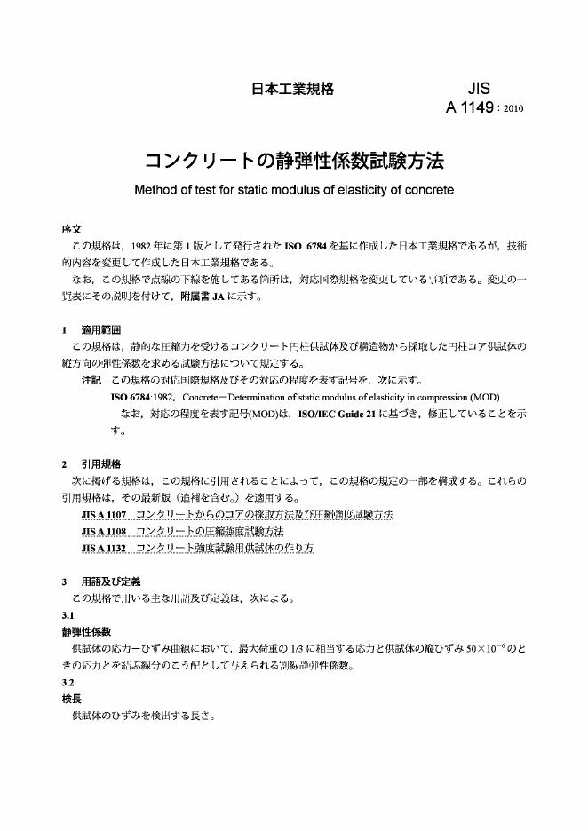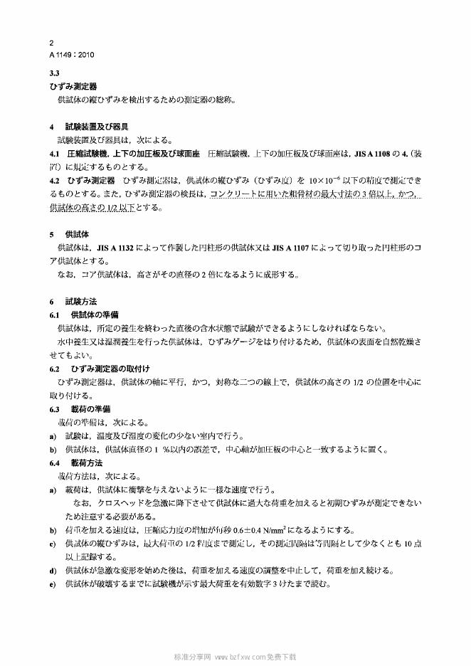 JIS A1149-2010 混凝土的静态弹性模量测试方法